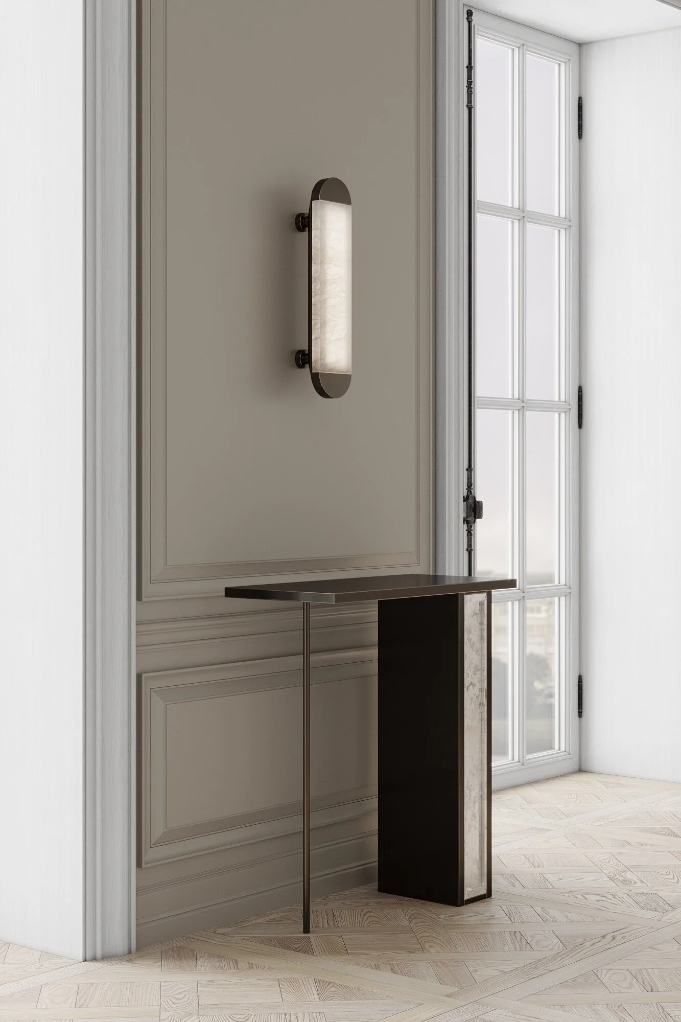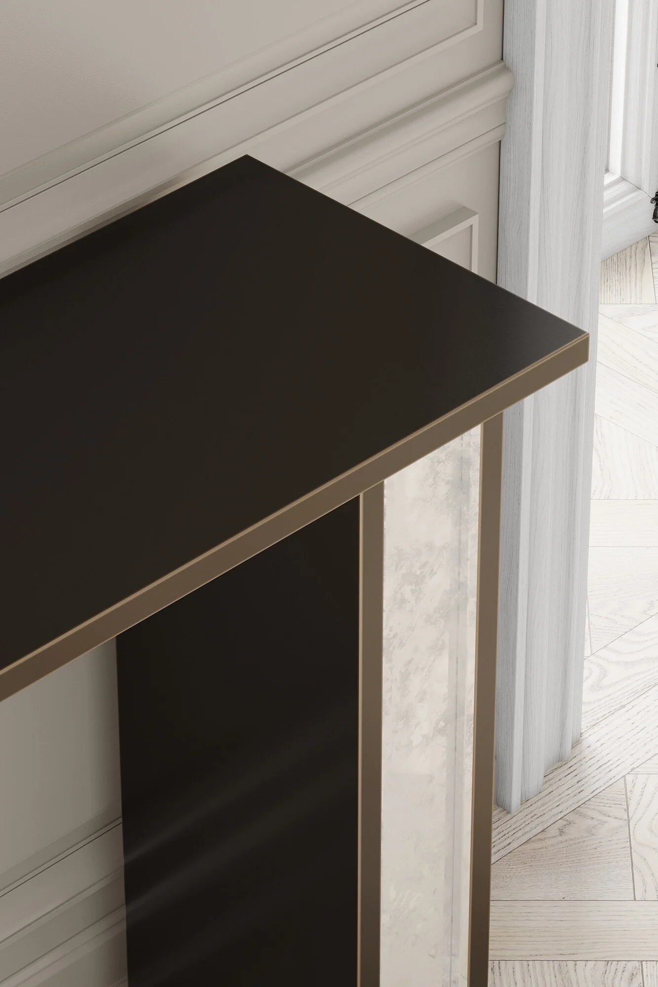 SILHOUETTE CONSOLE - BEVELED MIRROR & PATINATED STEEL