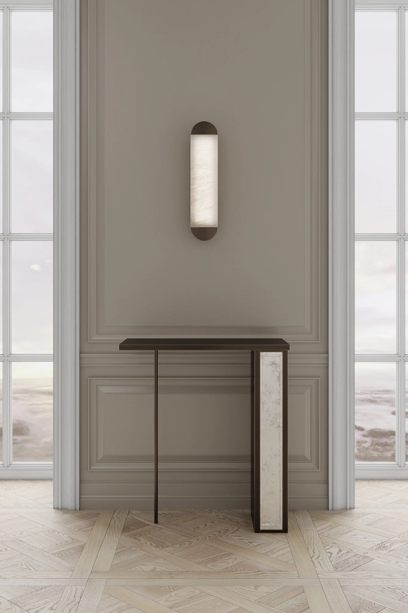 Designed by Emél & Browne in Notting Hill London, the Silhouette Console embodies the essence of nightfall, as part of the Lastlight Collection. Our craft is to evoke balancing and healing energy into interiors, through the fusion of gemstone, crystal and natural materials.
